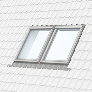 Het daglichtsysteem Horizontaal Duo 100 mm wordt als complete set geleverd, twee identieke LuXtra dakramen incl. alle benodigde (koppel)gootstukken UCX .. 13E WL met een koppelafstand van 100 mm.