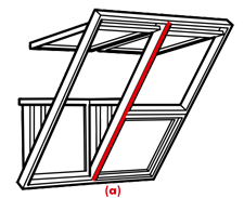 Twee bovenvensters met scharnierpunt aan de bovenzijde kunnen traploos worden uitgezet tot 45° ten opzichte van de dakhelling. De bovenvensters worden bediend d.m.v. een bedieningshandgreep aan de onderzijde van het draaiende gedeelte.