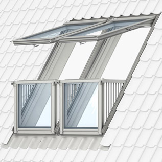 De ondervensters van de Cabrio openen naar buiten en creëren per venster een klein balkon. Wanneer het onderste dakraam wordt geopend, verschijnt automatisch de geïntegreerde balustrade.